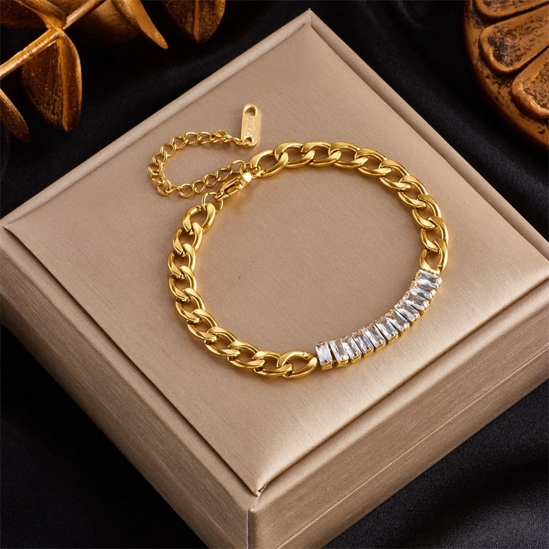 | Material | 18k Gold / 316L SS / CZ Diamonds |
