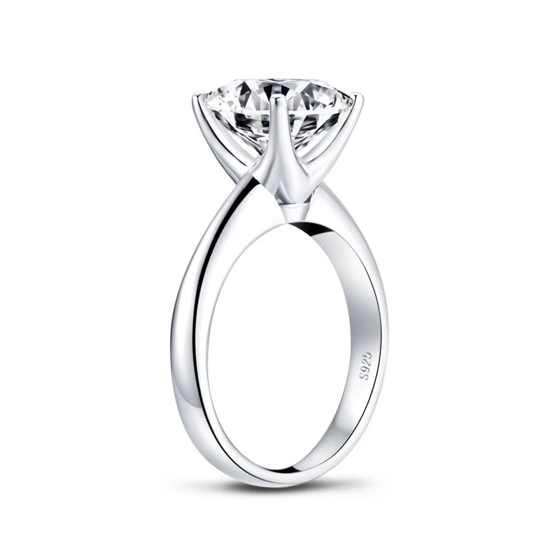 This 925 Solid Sterling Silver ring features a 3-carat Diamond with an 18kt white gold frame. The ring is Designed and crafted to perfection.